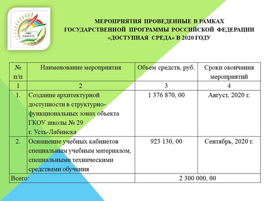 В ГКОУ школе № 29 г. Усть-Лабинска созданы специальные условия для получения образования обучающимися с интеллектуальными нарушениями.